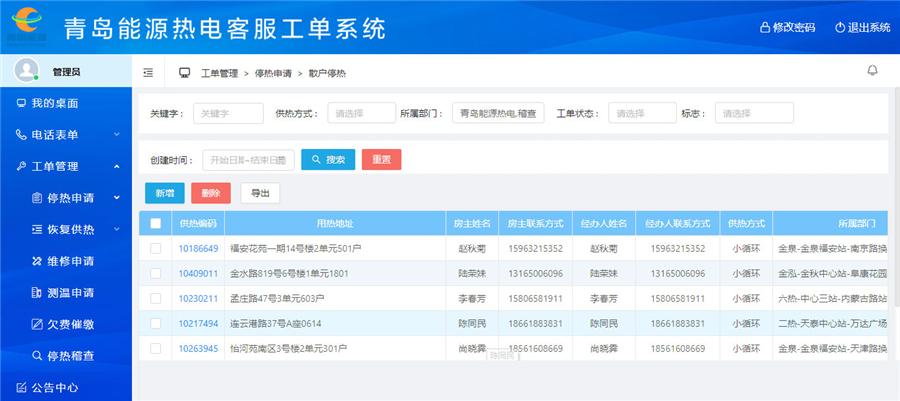 此系统包含我的桌面,电话表单,工单管理,公告中心,地图展示,专家知识库,业务报表,统计分析,系统管理。