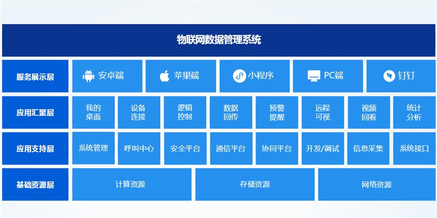 物联网数据管理平台处在物联网技术软件和硬件结合的枢纽位置,一方面肩负管理底层硬件并赋于上层应用服务的重任,另一方面,聚合硬件属性、感知讯息、用户身份、交互指令等静态及动态讯息。物联网平台具有通信、数据流通、设备管理和应用程序等功能。